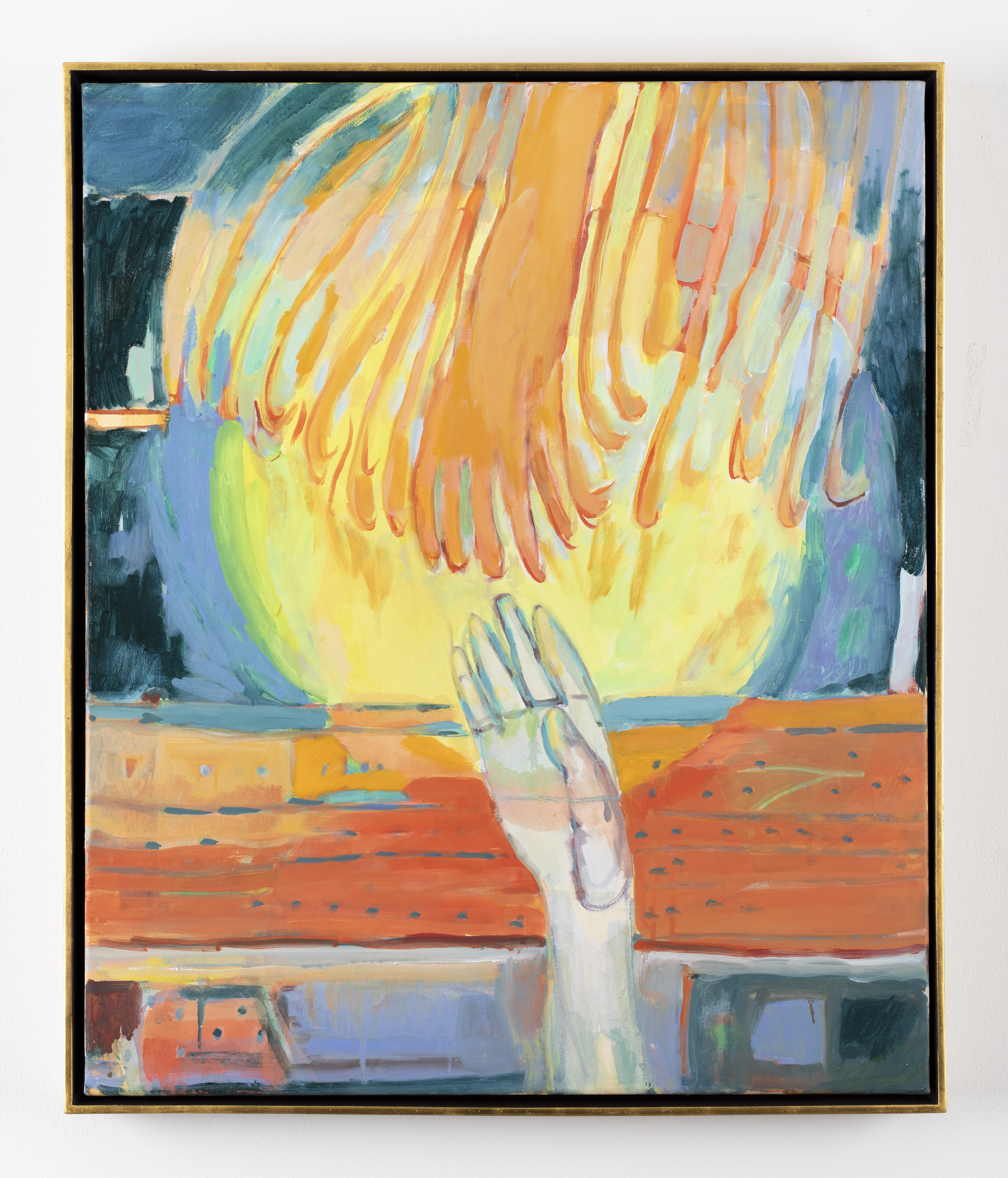 Tender Beams, 2019, waterbased oil on canvas, hand-gilded 24 carat gold and painted clay frame, 60 x 50 cm / 23.6 x 19.7 in, 62.5 x 52.2 x 4.9 cm framed / 24.6 x 20.6 x 1.9 ins framed