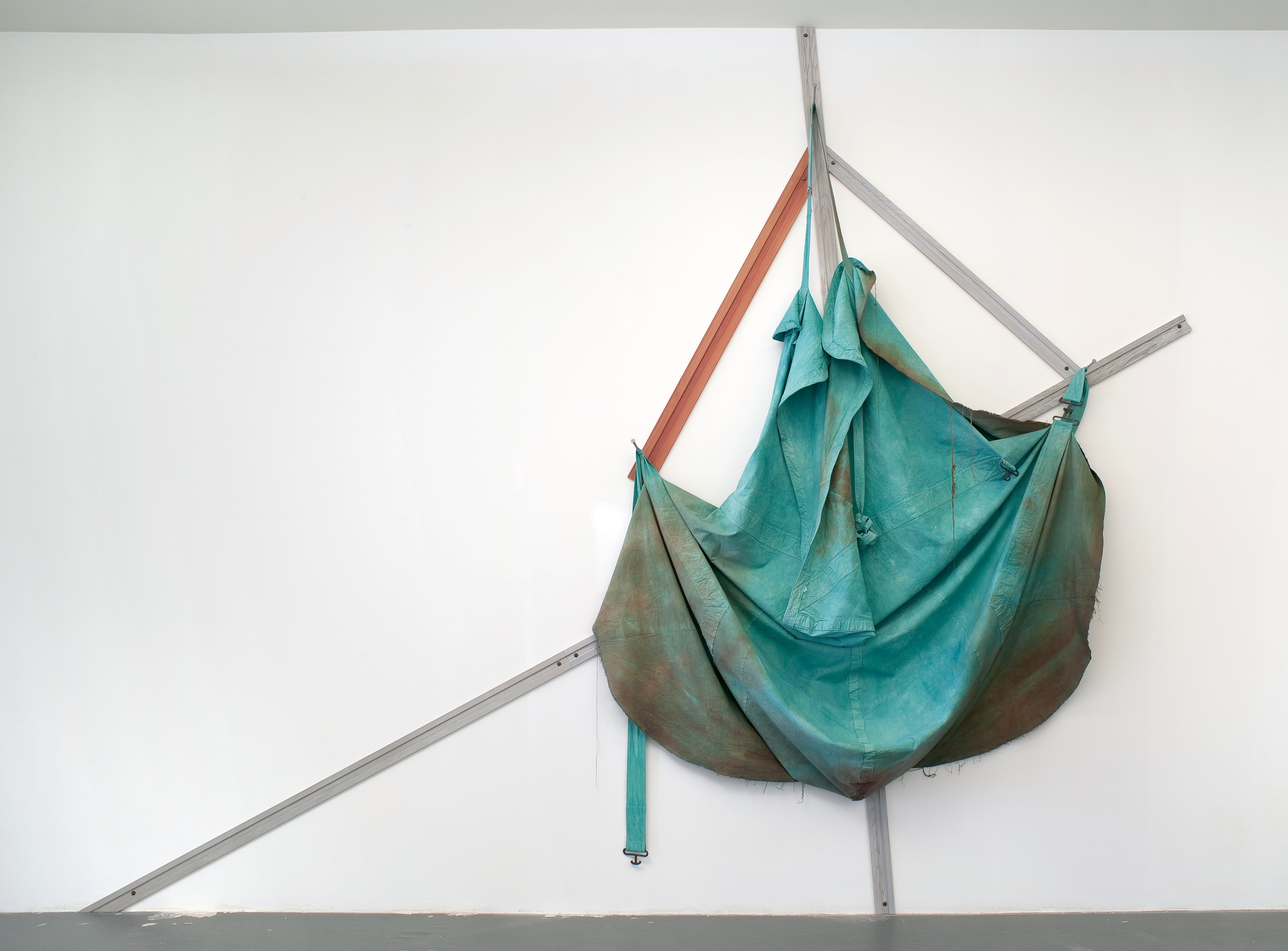 Commensurate with modern progress, 2010, Canvas, Inland Red Cedar, dye, stain, sea salt and hardware, 156 x 192 x 17 inches (dimensions variable)