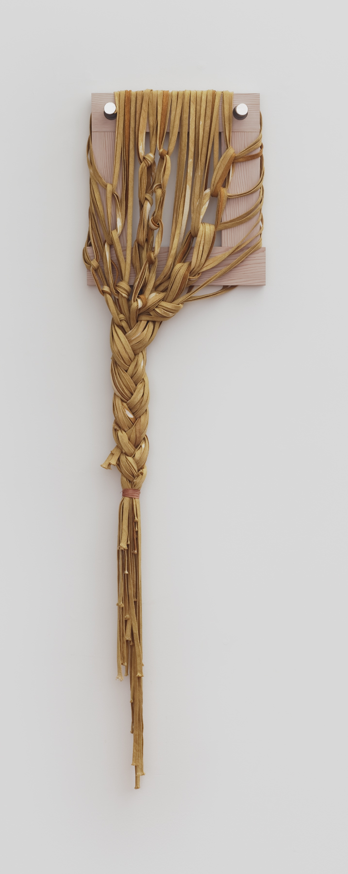 Threshold (braid - strawberry chain), 2015, Polished nickel plated brass, Western red cedar, cotton, drawcord, stain, dye, hardware, 59 x 15.5 x 5 inches