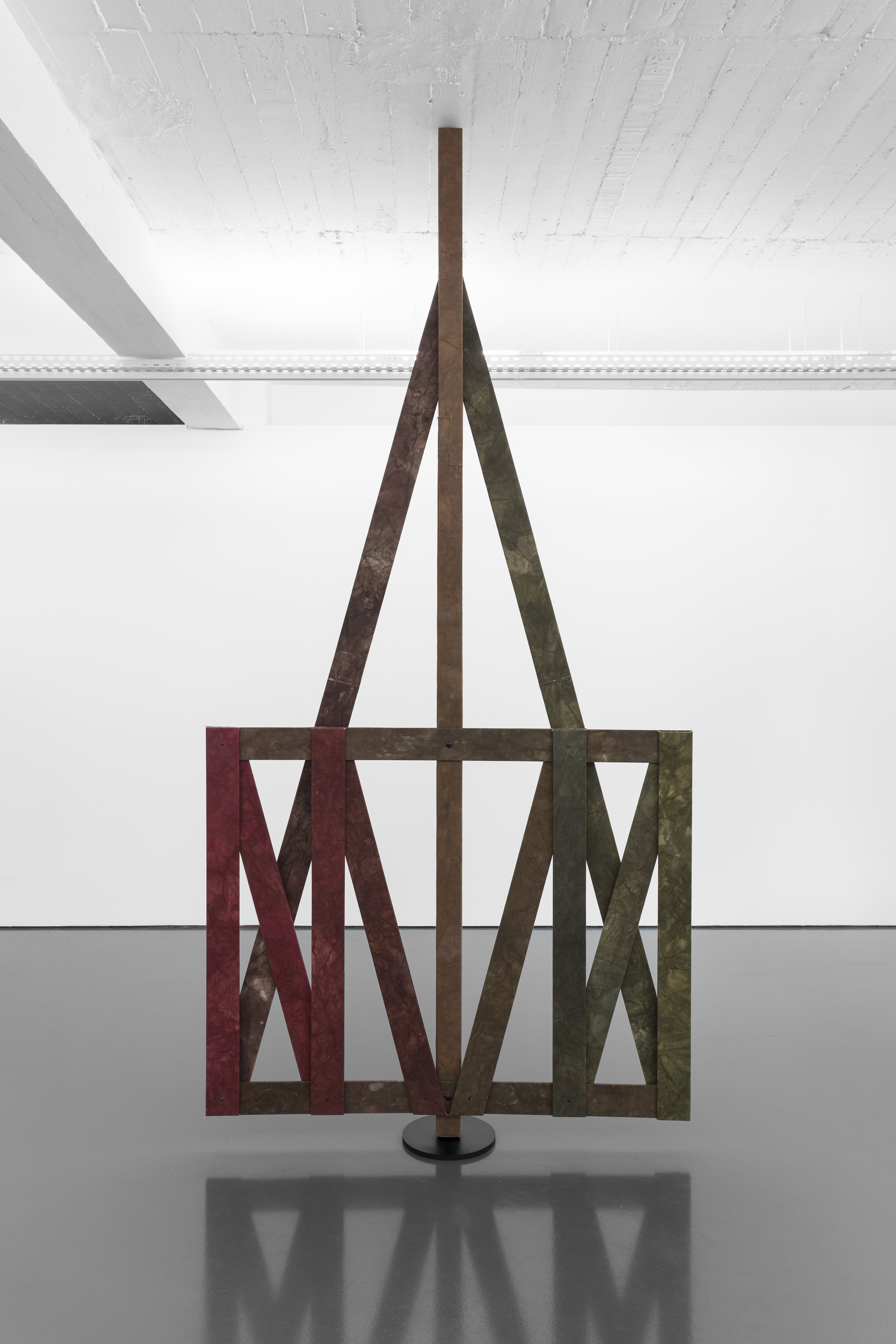 Double Gate, 2015, Wood, MDF, hand-dyed canvas and hardware, 152 x 60 x 4 inches