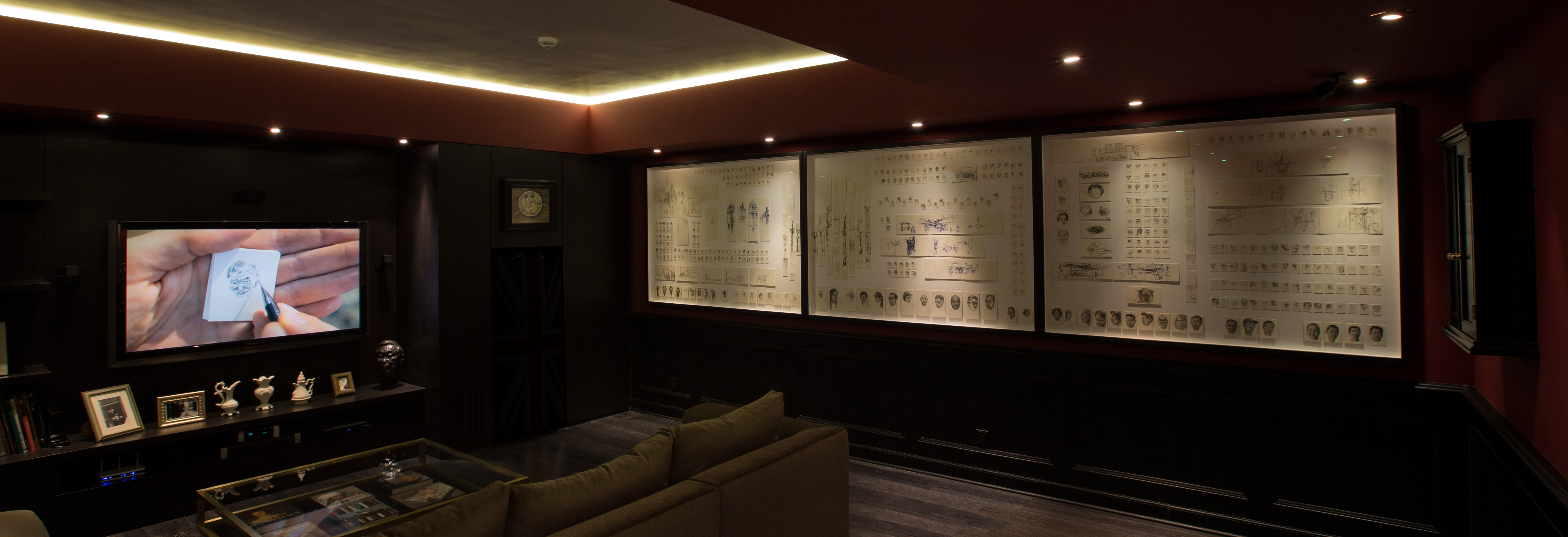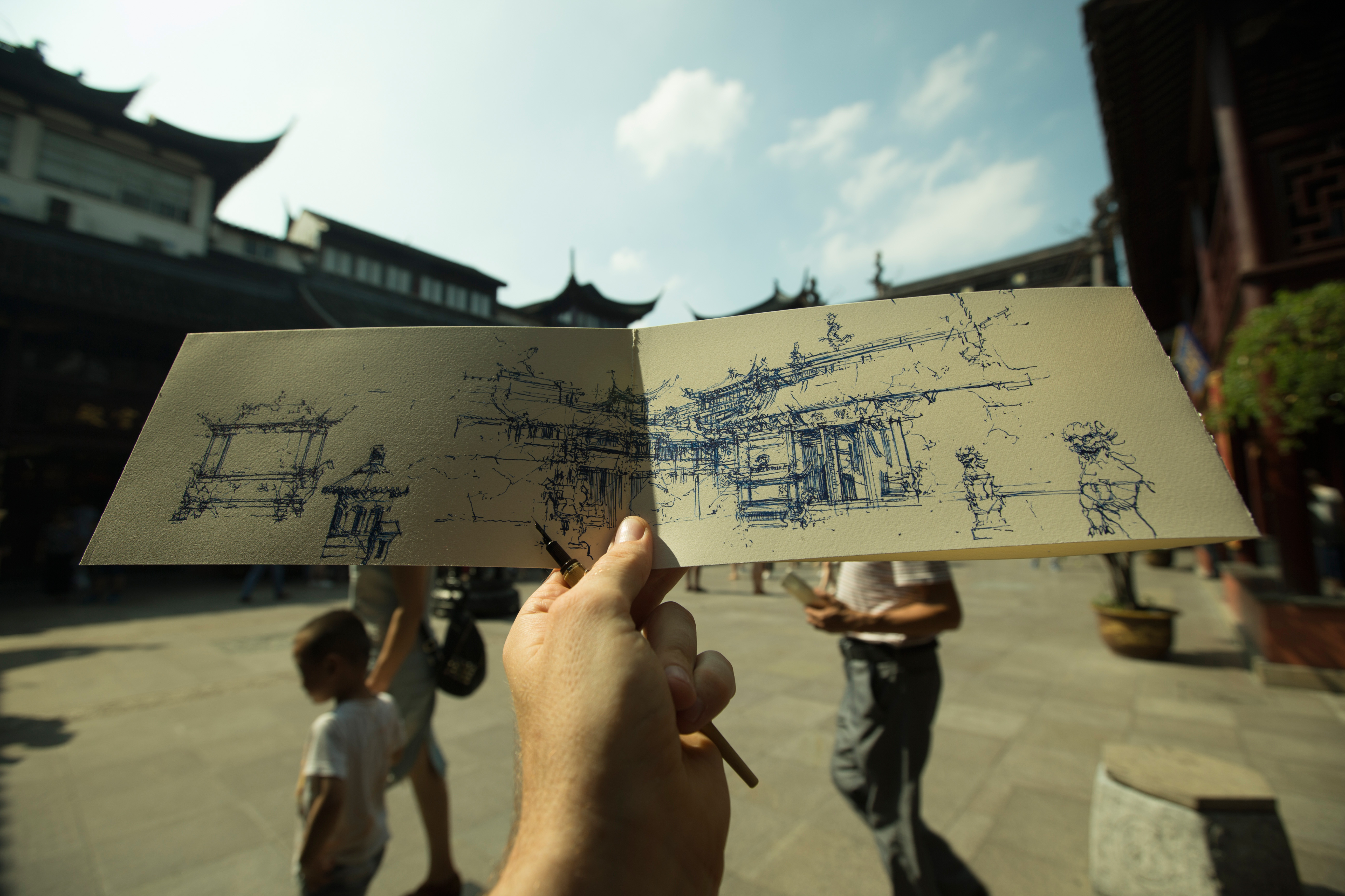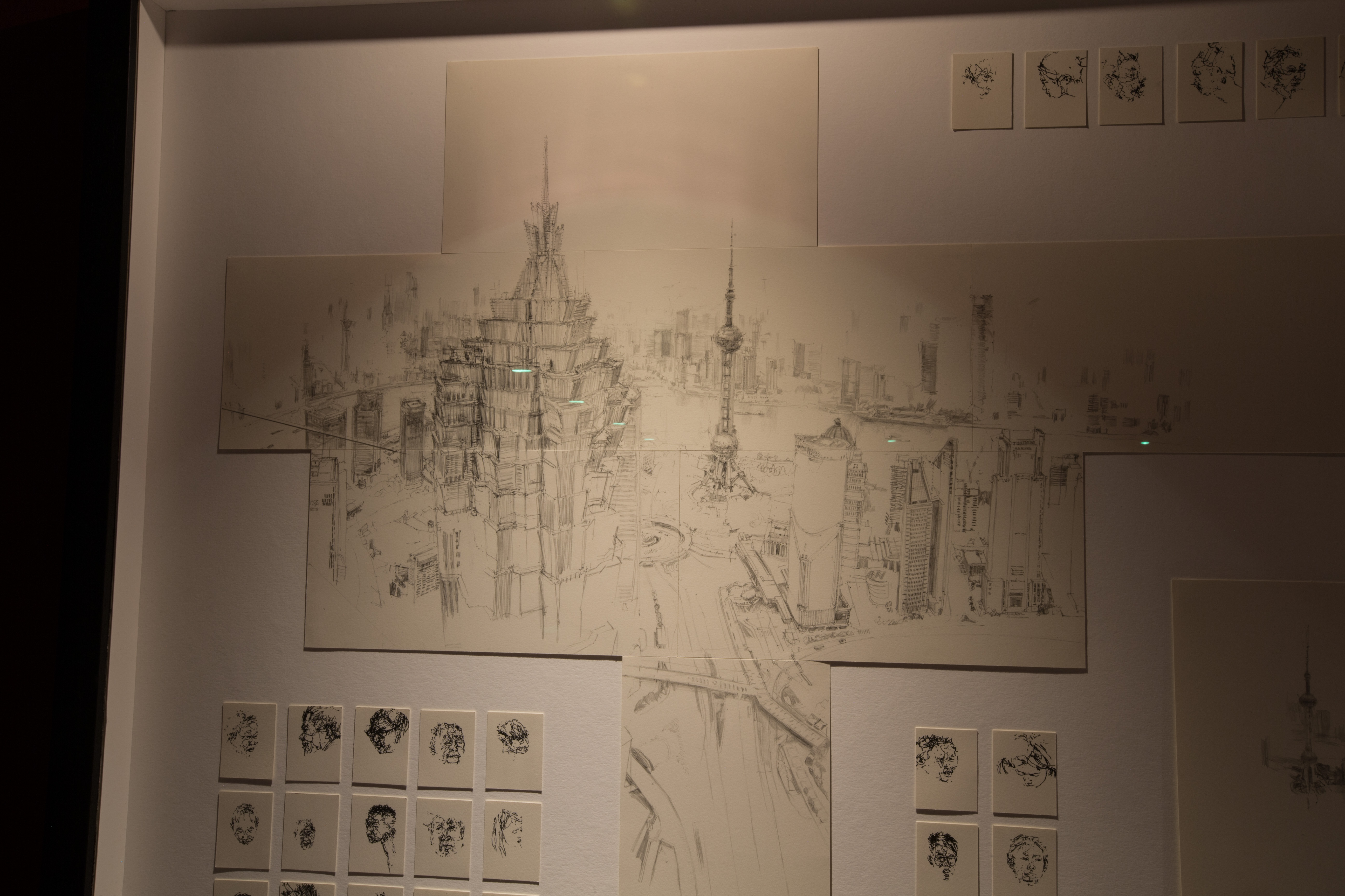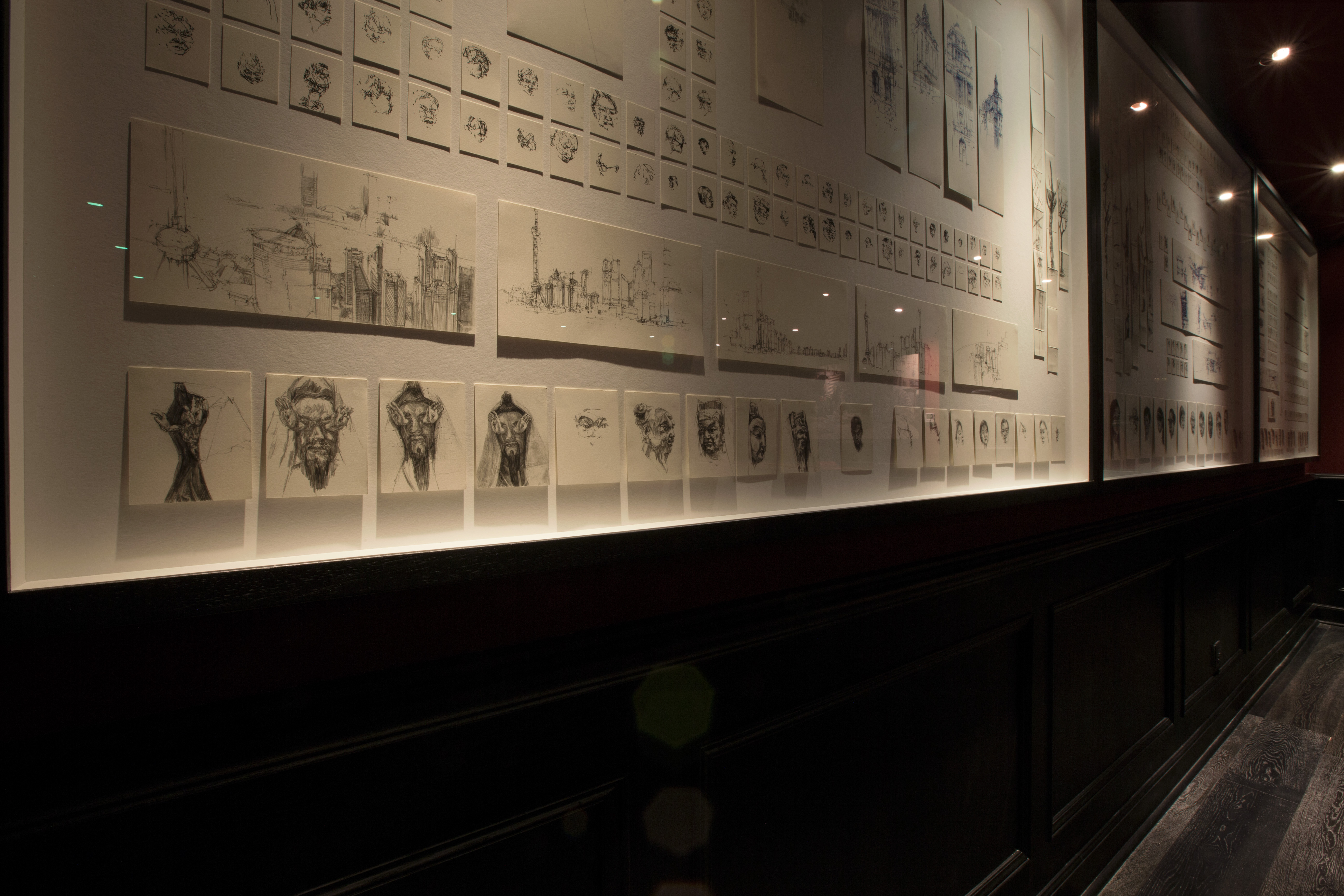 For “Seeing Hand,” Goodwin made several trips to Shanghai for a combined period of 6 weeks. During this time, he lived with the collectors, familiarising himself with the immediate neighbourhood, the Lees’ friends and associates, and further afield, with the public spaces and environs of the city. He made hundreds of drawings that chronicle the people, places, and situations he encountered. Goodwin also recorded the process of image-gathering on film that will be screened as part of the exhibition. The result is a piece that captures in micro and macro the combinations of old and new, traditional and contemporary, familiarly Western and distinctly Chinese, which distinguish Shanghai and the hosts themselves.