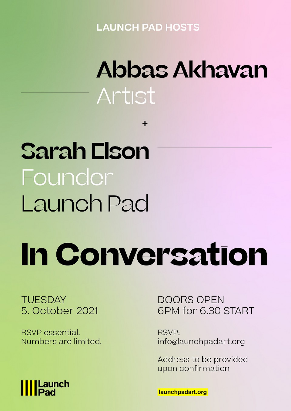 TONIGHT: Abbas Akhavan in conversation with Sarah Elson, Launch Pad Founder