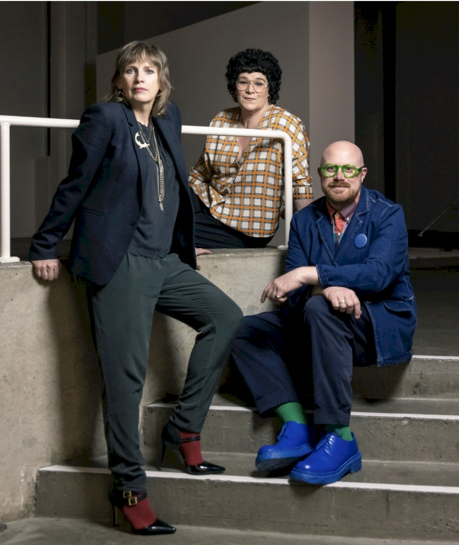 (L to R) Artist Isabel Nolan, Curator Georgina Jackson and Producer Cian O’Brien at The Douglas Hyde Gallery of Contemporary Art, Dublin.