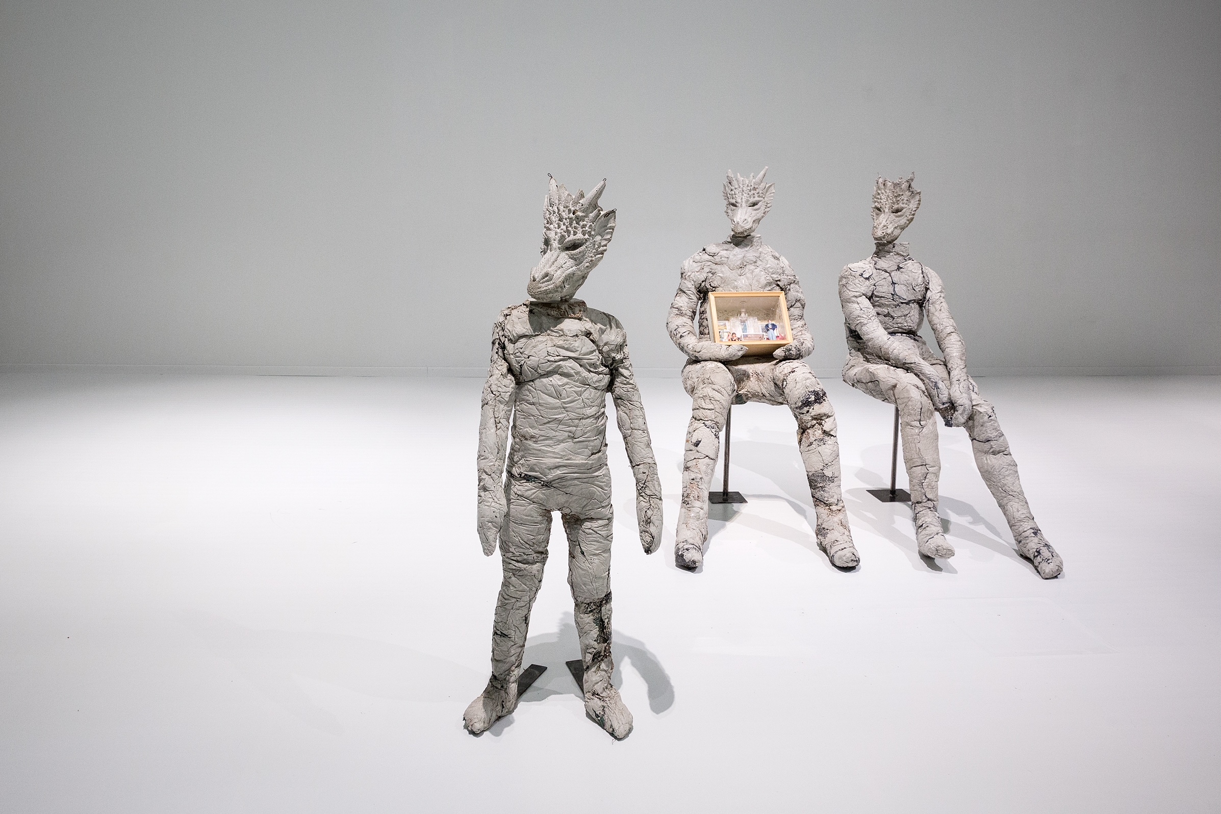 In Karlson's sculptural practice, animals and people are the main protagonists. Her often large-scale sculptural pieces produced by means of mixed techniques show a variety of characters, from ceramic dogs to cement dinosaurs and Neanderthals, composed into intricate installations. Karlson has shown extensively in Estonia and participated in exhibitions abroad.