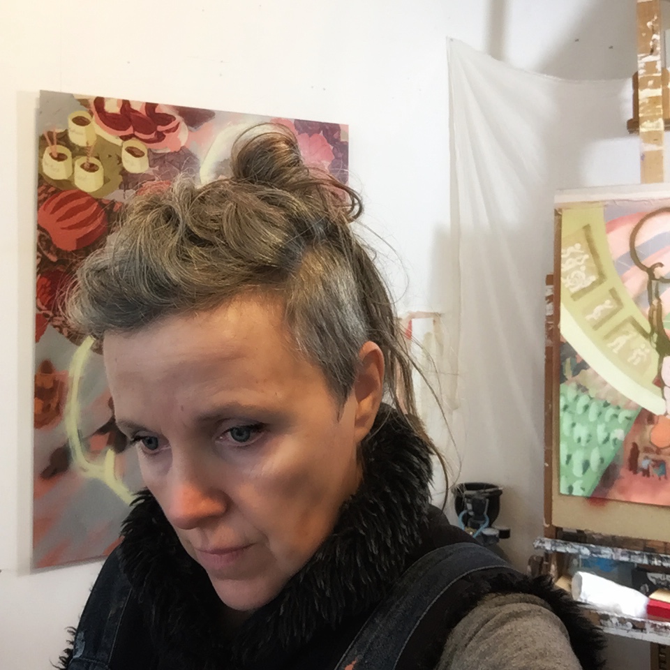 Elizabeth is what we would call a painter’s painter: someone committed to the medium not as nostalgia but as an unstable, demanding site where affect, violence, tenderness, and historical tension can coexist. Working across acrylics and pro-markers, she approaches materials as questions rather than certainties. Her longstanding fascination with CCTV aesthetics - rooted in the rise of surveillance systems and crime imagery in 1990s Britain -reveals a practice attentive to the politics of vision, the ethics of looking, and the economies of vulnerability.