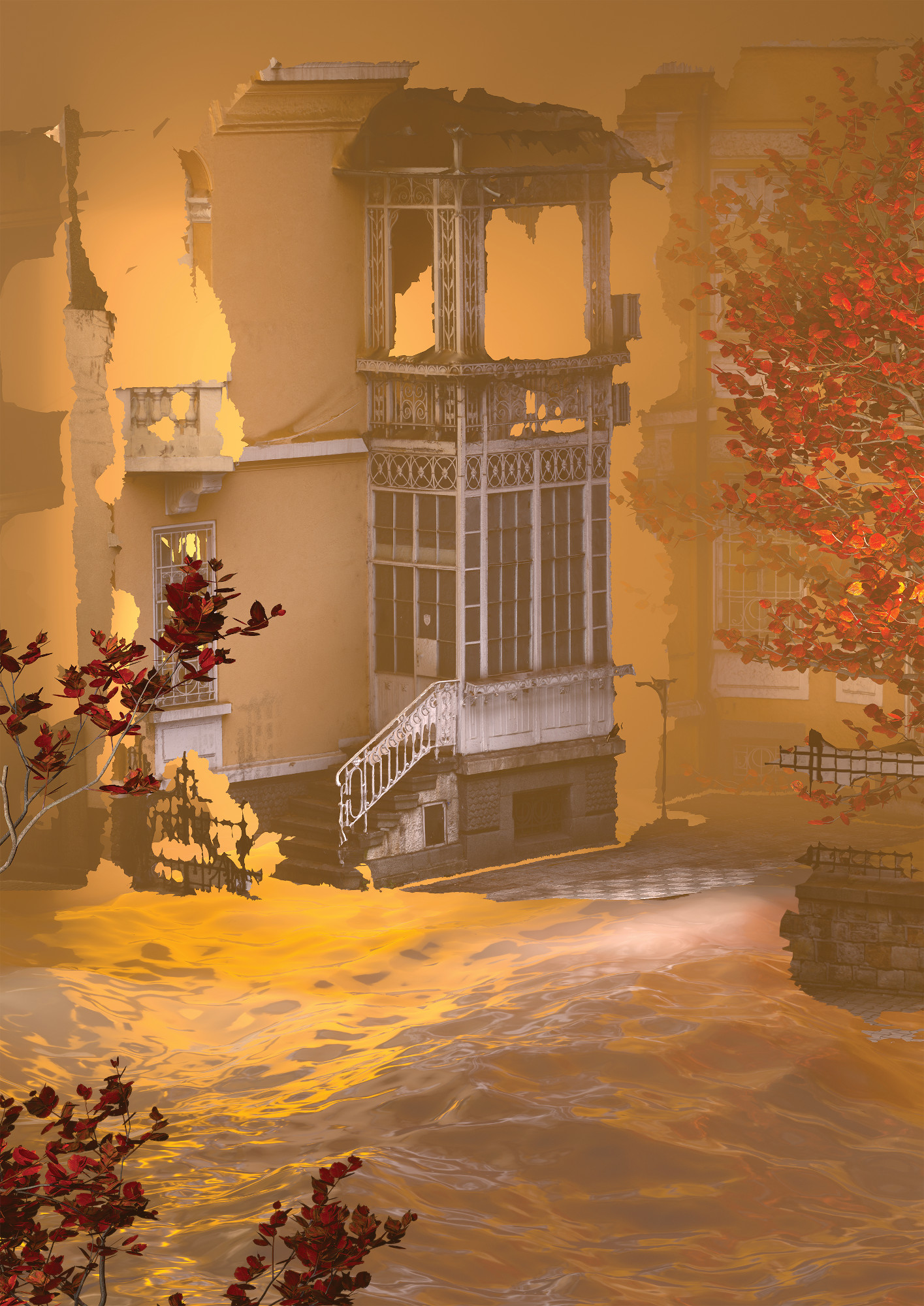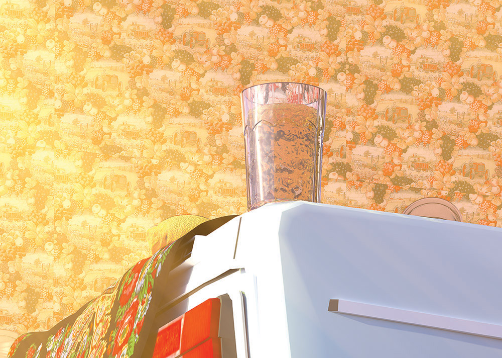 This work is part of a series that takes the rules of composition found in the style of the nature morte and uses them as a method for evoking emotion and narrative. By using computer-generated imagery I have generated a hyper-realistic depiction of a post-communist scene located in Sofia, Bulgaria. George Stamenov