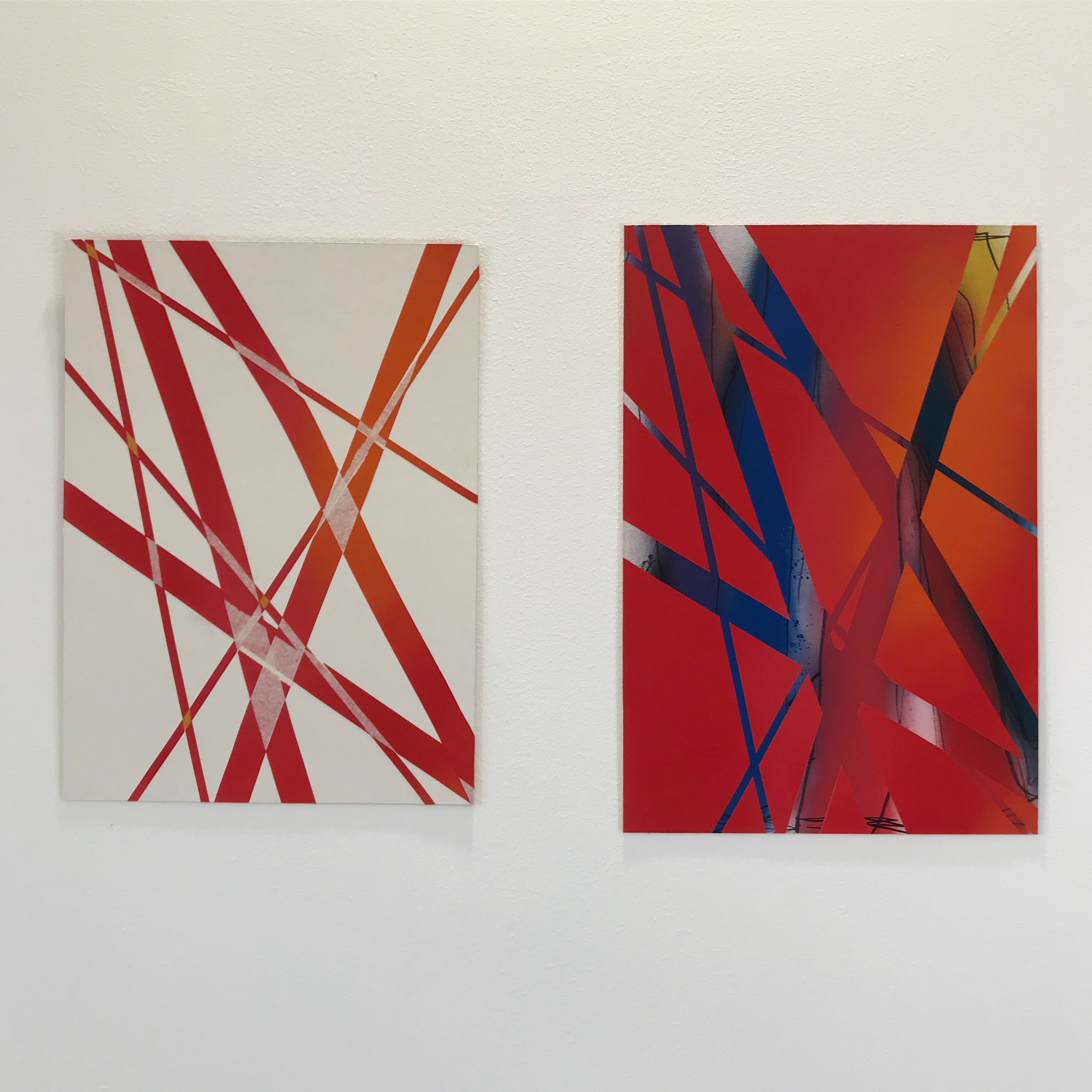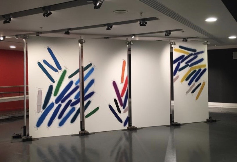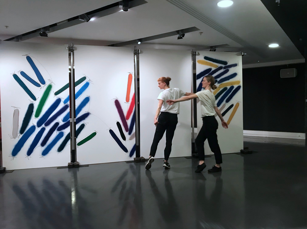 Singular, 2019 with spray paint panels, by Joe Moran. Dancers Katye Coe and Hilary Stainsby. Sadler’s Wells Sampled Festival 2019. Image: Courtesy the Artist.
