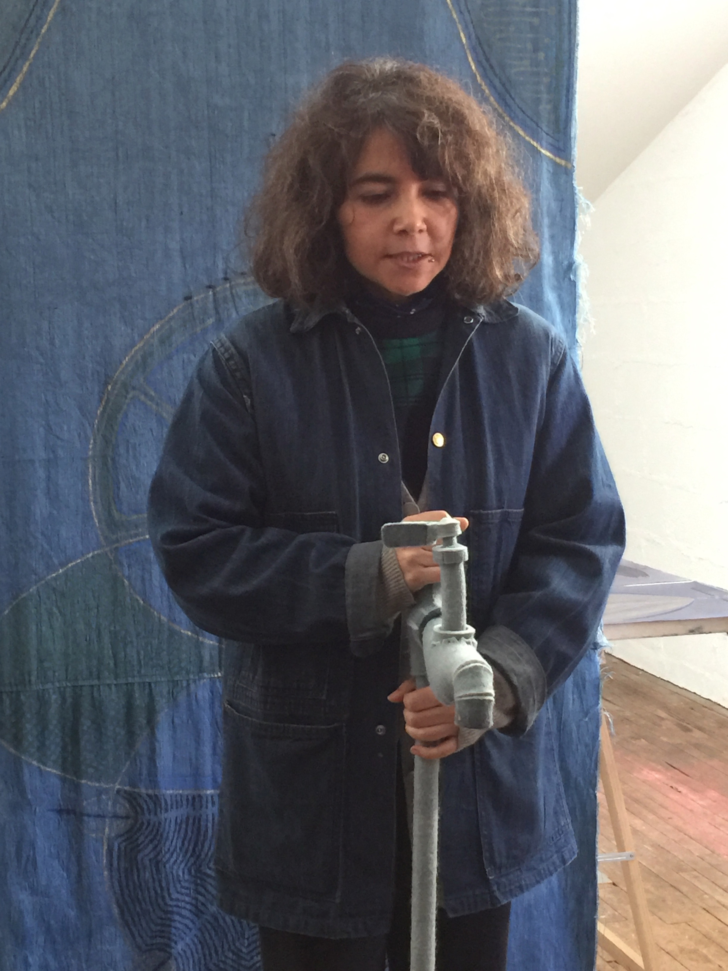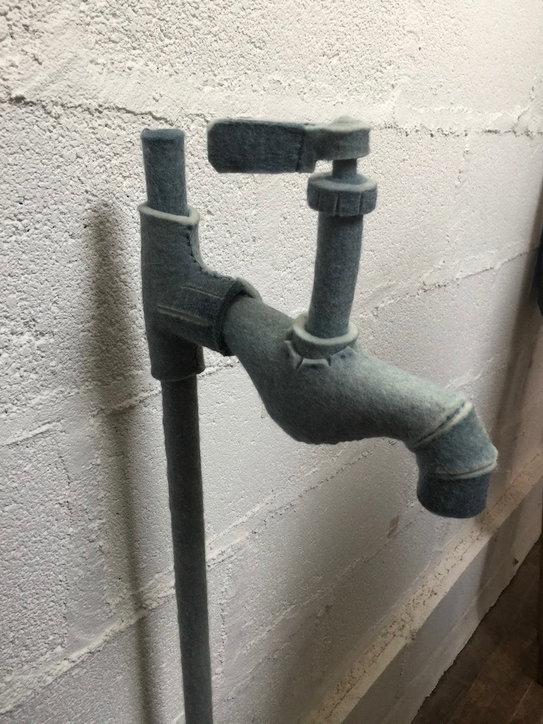 Johanna Unzueta (b 1974, Santiago de Chile) lives and works in Brooklyn. Unzueta received her MFA from Universidad Católica de Chile in 1999. Equally fascinated by the hand-made and the industrial, her work in woven and dyed textile, paper and felt, references different forms of labor. Aesthetically-satisfying craftsmanship – largely absorbed from her early exposure to the foundational skills of indigenous makers in southern Chile -- and functionally-driven skilled labor – admired by her in architecture and industry - come together in Unzueta’s wool felt sculptures of commercial pipes and faucets, tools and hardware. Her more recent drawings, pressed between Plexiglas and set into wood bases, are the result of multiple techniques of dying, puncturing, embroidering and constructing the supporting structure. She consistently disrupts the distinctions between art and craft, the contemporary and traditional, and in doing so, questions broader social issues of progress and labor.