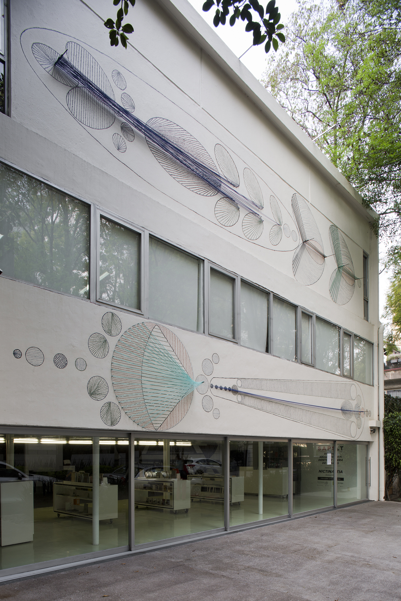 NIctinastia, Sala De Arte Publico Siqueiros. 2017, Mexico City. Oil sticks, pastels, pvc rope and metal sticks, 12mt x 6mt x 50cm. Image: Courtesy the Artist