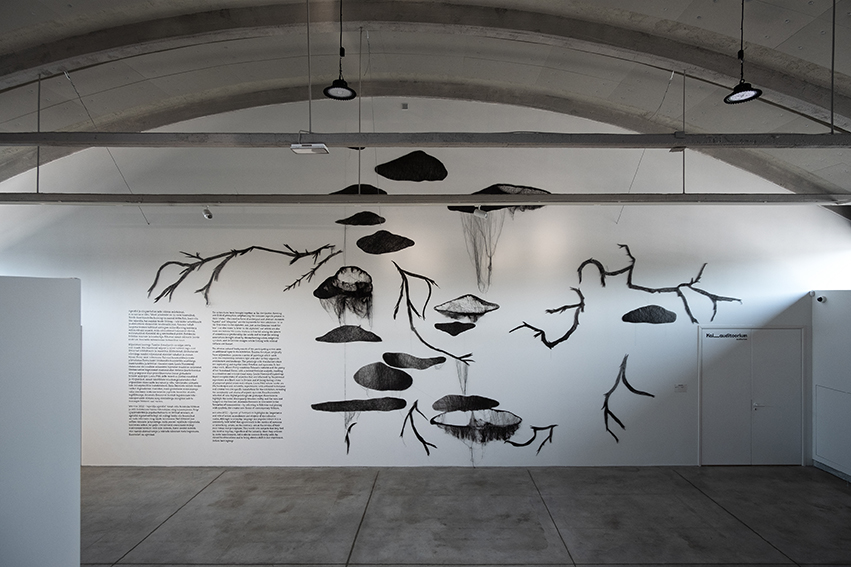 'Hello from within', 2019-2022, nails and thread. ars viva 2022 – Agents of Perception, Kai Art Centre, Tallinn. Installation view. Photography: Albert Kerstna.