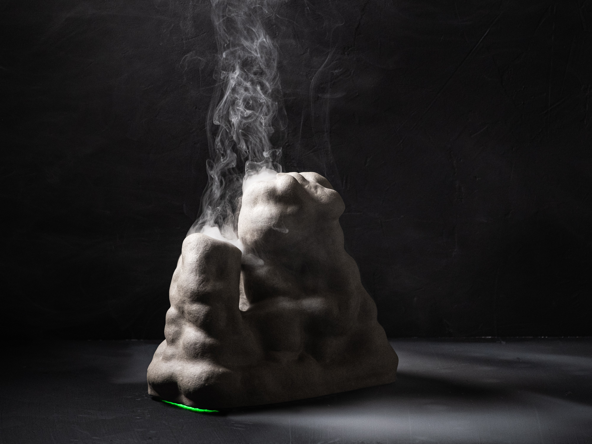Laura Põld, Wasteland. The Phosphorite War, 2021-2022. Ceramics, smoke machines. Attic Hall, Atelierhaus Salzamt, Linz Photography: Albert Kerstna