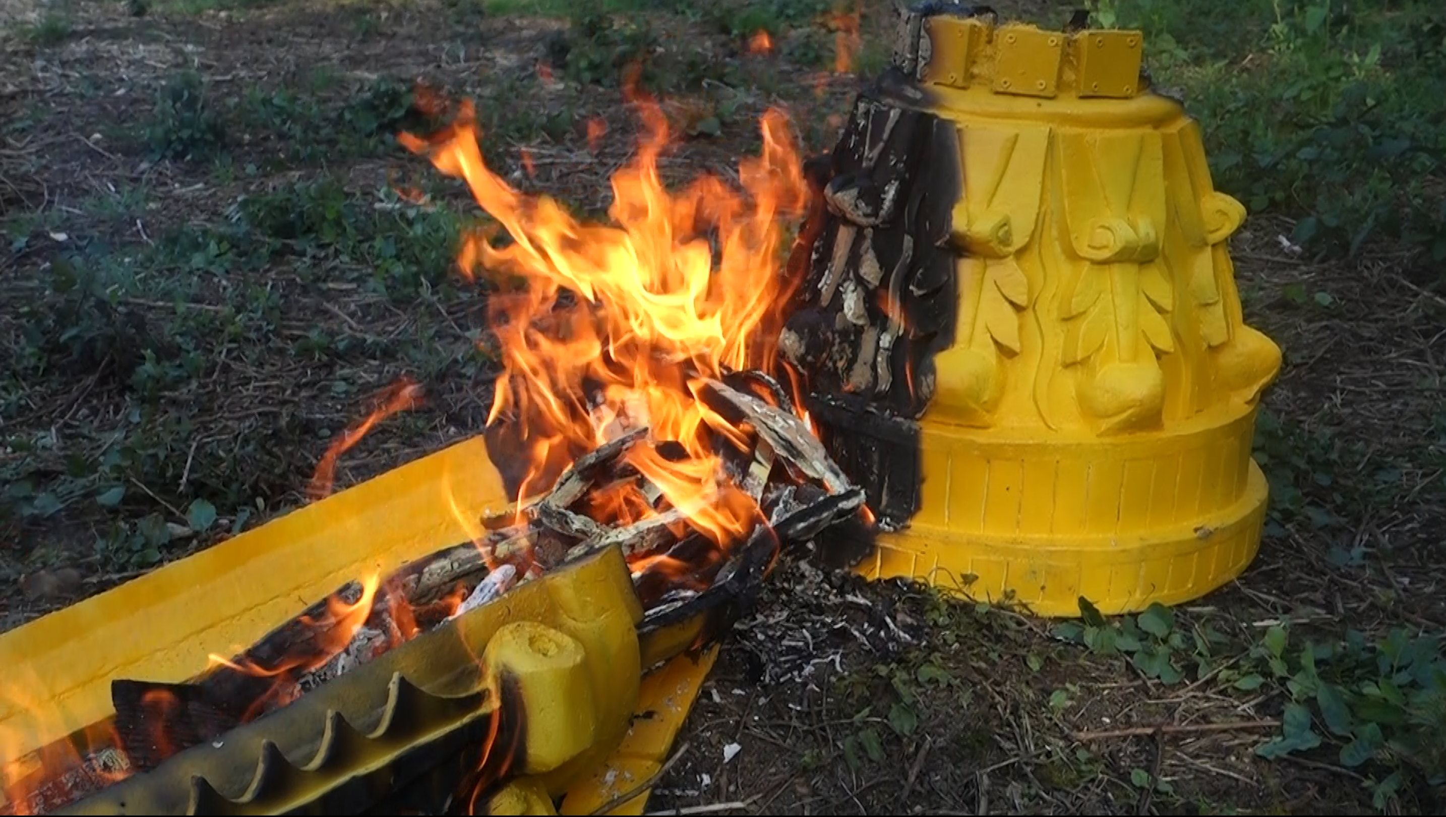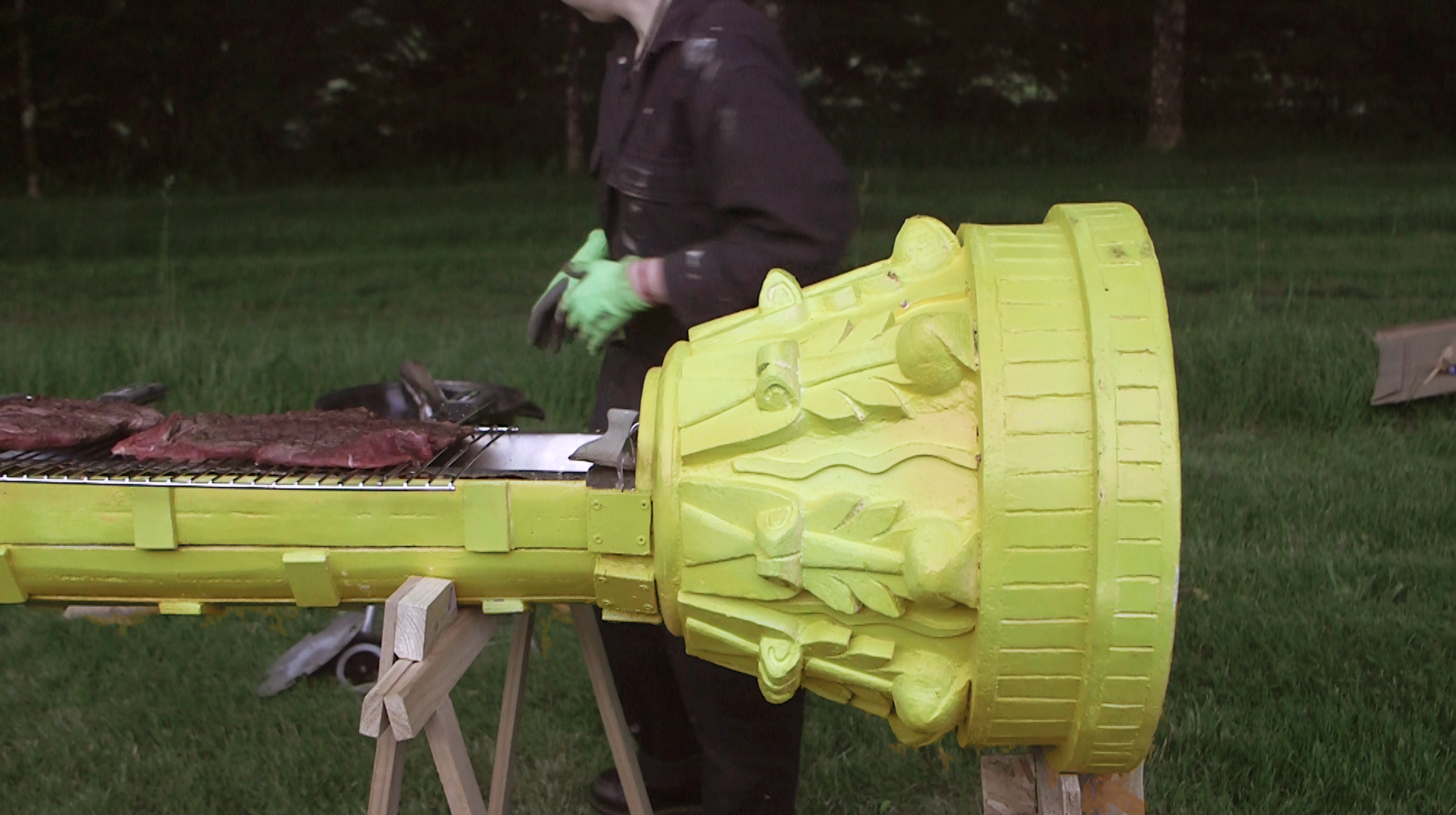At the end of the residency, Pilar set the column on fire, leaving only fragments and ashes. Fire features in much of Pilar’s work, often in reference to the phoenix and its symbolism of both destruction and rebirth. Her work operates like the myths she draws upon. It does not remain in physical form, but lives on as a story, recorded in short films and physical remnants. After its destruction, the column also became an archeological fragment, ready to be distorted, twisted and rediscovered, to shift over time and perhaps be remade in a different image. It is the process of making and destroying that is important in Pilar’s work. She looks at the world as a provider of materials that are ripe for her interference. Ideas that are floating around either in the air, the land, the architecture, the plants, in stories or in fire. Ideas that are ready to be made, destroyed and remade. The learning is done through the physicality of doing, not necessarily in looking or thinking. She brings ideas and myths into the physical plane where we can interact with them, only to destroy them and send those ideas back up into the air as newly available repositories for meaning making.