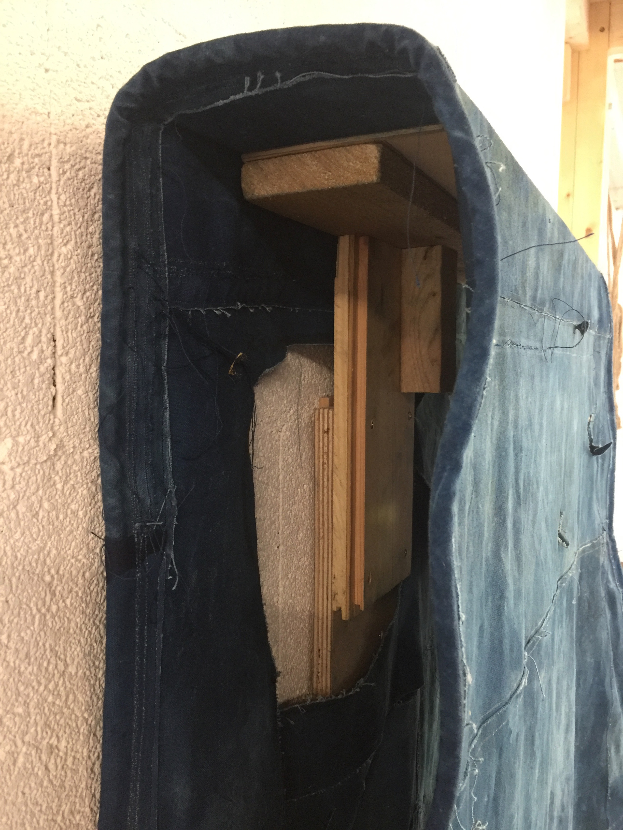 I would drag them into the studio to the sewing machine to be stitched together (to form the exterior or interior faces of the paintings) and then back out again. By now, I could see the inter-dependency of the outside (landscape and canvas) and the inside (studio and construction) as one of the defining characteristic of the place.