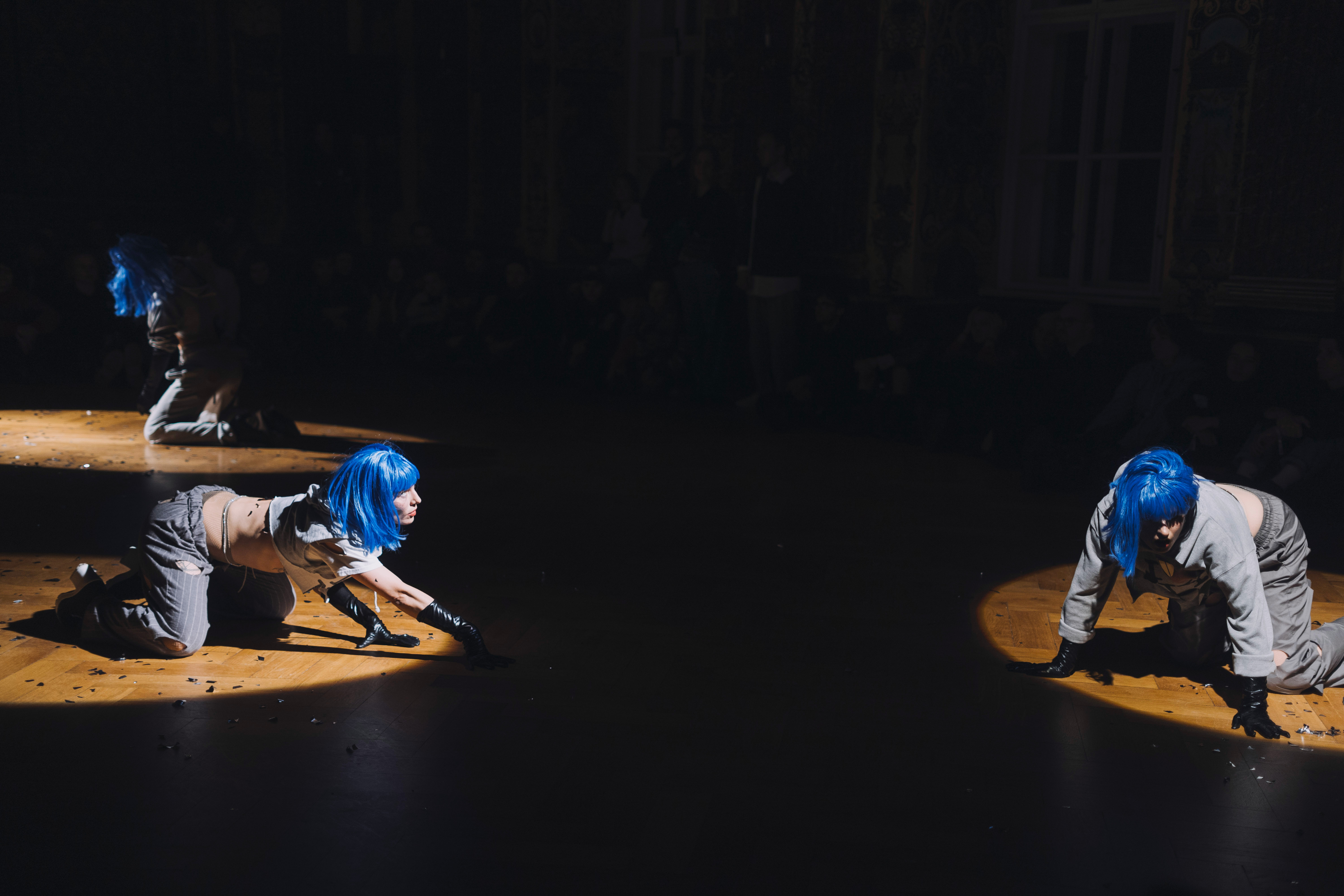 Valentýna Janů, Snap, performance, 20 min. Performed & choreographed by Valentýna Janů, Monina Nevrlá, Zizoe Akopjan Veselá. Music mix by New Magic Media, PAF Olomouc, 2023.