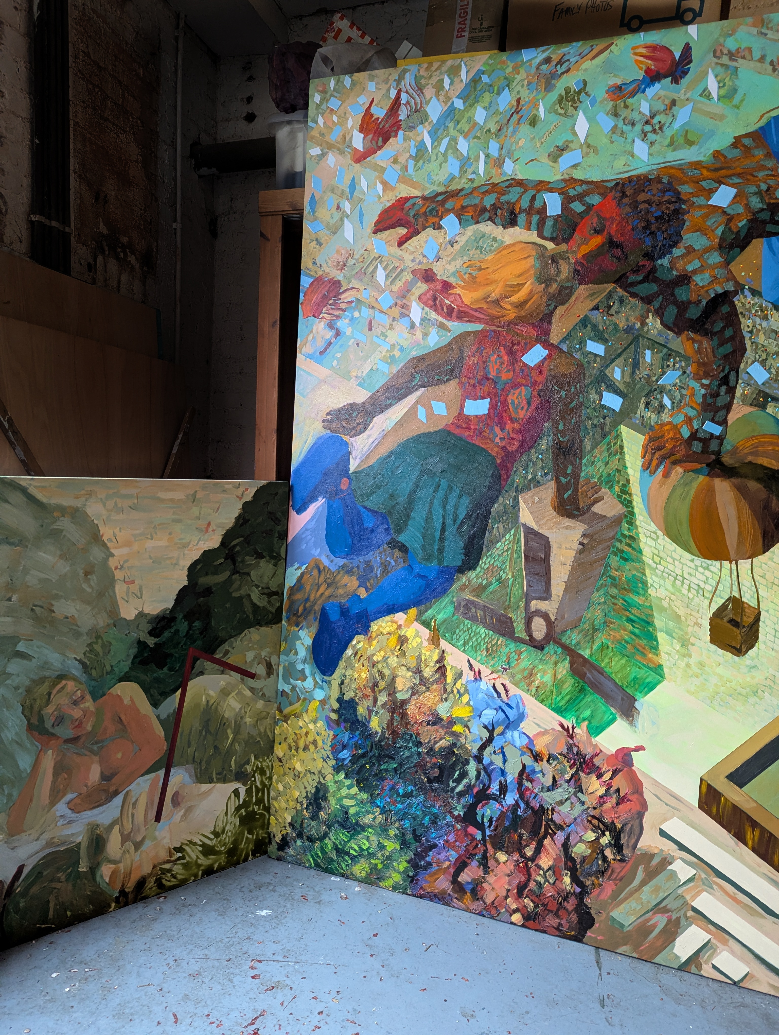 Elizabeth Chisholm, Proximity To Her Wet Leg, Acrylic on canvas, 122 x 84cm, Proximity To Infinite Love, 2025/2024, Acrylic on canvas, 244cm x 183cm